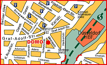 bis Hbf Düsseldorf, am Hauptausgang Konrad-Adenauer-Platz nach links auf die Graf-Adolf-Str, ca. 500m bis zum Stresemannplatz wo sich auf der rechten Seite das Hotel befindet.